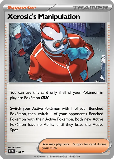 You can use this card only if all of your Pokémon in play are Pokémon X. Switch your Active Pokémon with 1 of your Benched Pokémon, then switch 1 of your opponent's Benched Pokémon with their Active Pokémon. Both new Active Pokémon have no Ability until they leave the Active Spot.