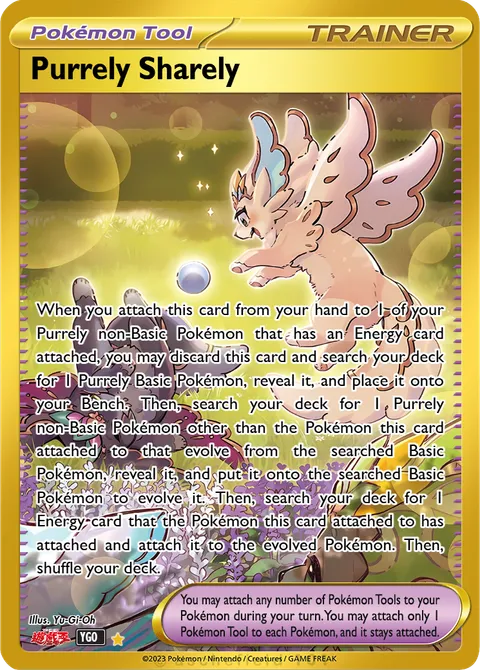 When you attach this card from your hand to 1 of your Purrely non-Basic Pokémon that has an Energy card attached, you may discard this card and search your deck for 1 Purrely Basic Pokémon, reveal it, and place it onto your Bench. Then, search your deck for 1 Purrely non-Basic Pokémon other than the Pokémon this card attached to that evolve from the searched Basic Pokémon, reveal it, and put it onto the searched Basic Pokémon to evolve it. Then, search your deck for 1 Energy card that the Pokémon this card attached to has attached and attach it to the evolved Pokémon. Then, shuffle your deck.