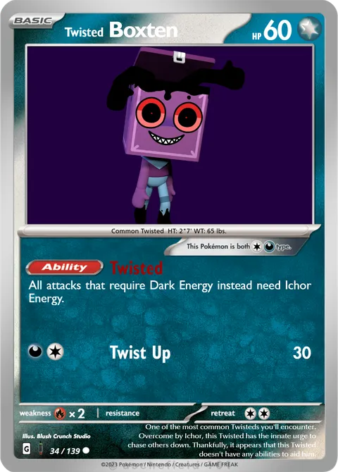 Common Twisted HT: 2"7' WT: 65 lbs.illus. Blush Crunch Studio#34/139One of the most common Twisteds you'll encounter. Overcome by Ichor, this Twisted has the innate urge to chase others down. Thankfully, it appears that this Twisted doesn't have any abilities to aid him.Created by @MicroDW on 10 July 2025