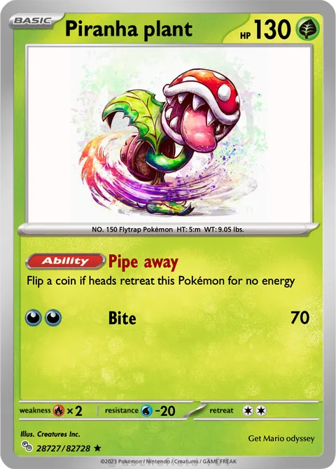 NO. 150 Flytrap Pokémon HT: 5:m WT: 9.05 lbs.illus. Creatures Inc.#28727/82728Get Mario odysseyCreated by @MissingNOteam on 24 March 2026, last edited on 24 March 2026Includes assets by Creatures Inc.