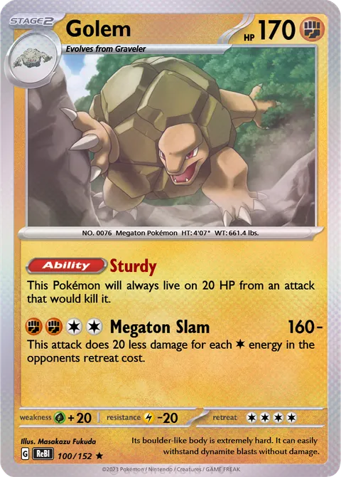 This Pokémon will always live on 20 HP from an attack that would kill it.Megaton Slam • 160-
