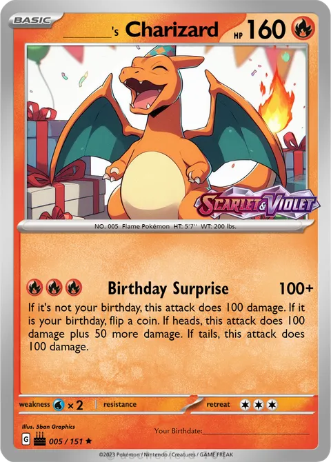 NO. 005 Flame Pokémon HT: 5'7'' WT: 200 lbs.illus. 5ban Graphics#005/151Your Birthdate:_______________________________Created by @NintendoFan on 24 February 2024
