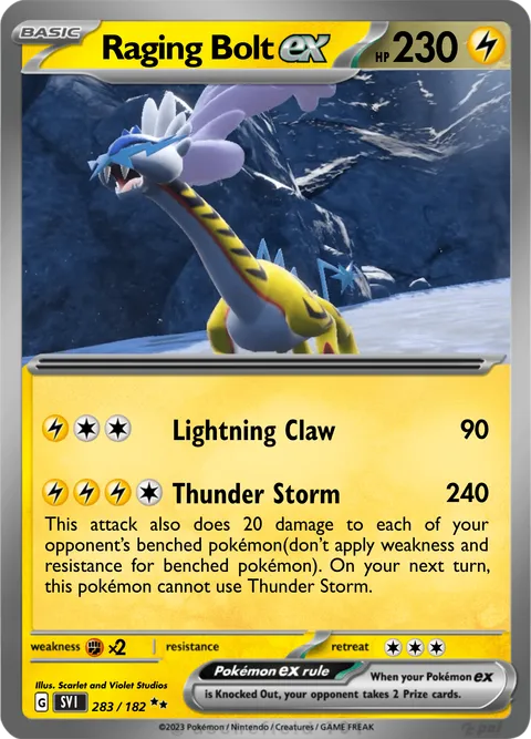 This attack also does 20 damage to each of your opponent’s benched pokémon(don’t apply weakness and resistance for benched pokémon). On your next turn, this pokémon cannot use Thunder Storm.
