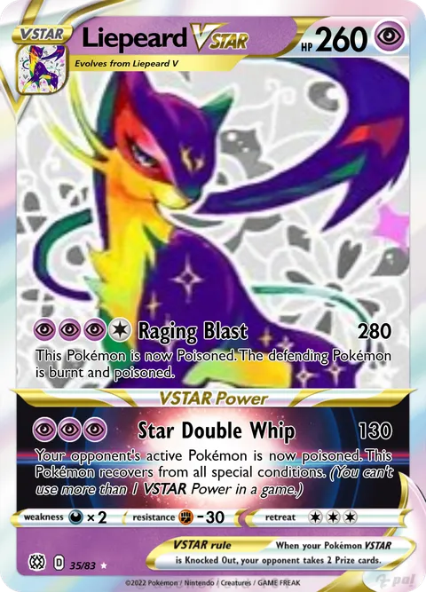 Evolves from Liepeard VSword & Shield•Pokémon•Psychic•VStar