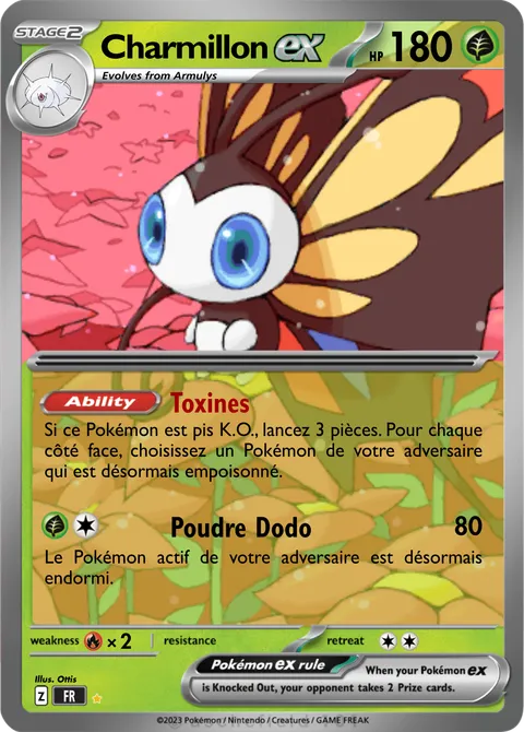 Si ce Pokémon est pis K.O., lancez 3 pièces. Pour chaque côté face, choisissez un Pokémon de votre adversaire qui est désormais empoisonné.Poudre Dodo • 80