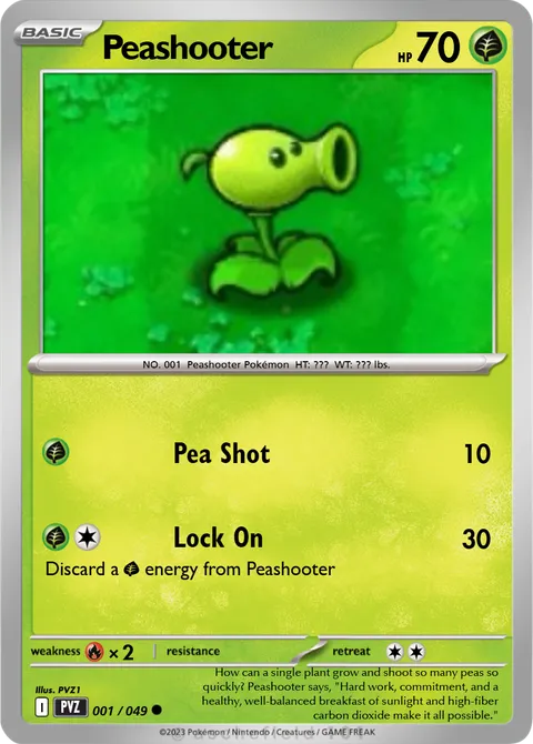 NO. 001 Peashooter Pokémon HT: ??? WT: ??? lbs.illus. PVZ1#001/049How can a single plant grow and shoot so