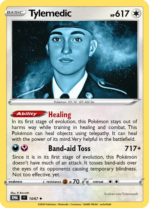 In its first stage of evolution, this Pokémon stays out of harms way while training in healing and combat. This Pokémon can heal objects using telepathy. It can heal with the power of its mind. Very helpful in the battlefield.Band-aid Toss • 717+