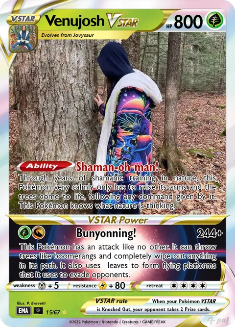 Through years of shamanic training in nature, this Pokémon very calmly only has to raise its arms and the trees come to life, following any command given by it. This Pokémon knows what nature is thinking.