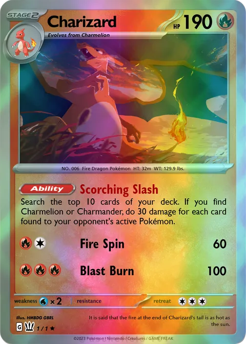Search the top 10 cards of your deck. If you find Charmelion or Charmander, do 30 damage for each card found to your opponent's active Pokémon.Fire Spin • 60