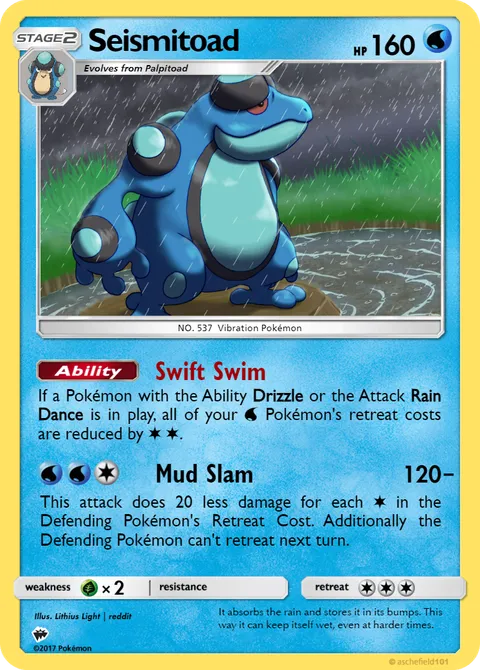If a Pokémon with the Ability Drizzle or the Attack Rain Dance is in play, all of your W Pokémon's retreat costs are reduced by C C.Mud Slam • 120-
