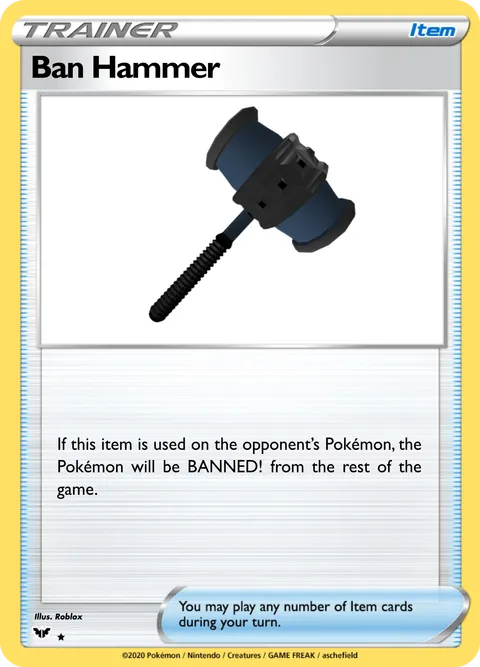If this item is used on the opponent’s Pokémon, the Pokémon will be BANNED! from the rest of the game.
