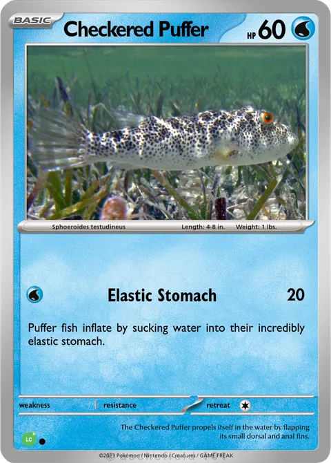 Sphoeroides testudineus Length: 4-8 in. Weight: 1 lbs. The Checkered Puffer propels itself in the water by flapping its small dorsal and anal fins.Created by @PokeScience on 29 April 2025