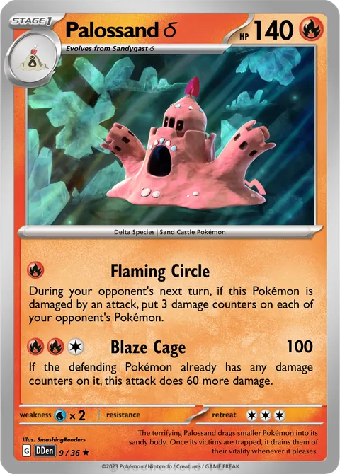 Delta Species | Sand Castle Pokémonillus. SmashingRenders#9/36The terrifying Palossand drags smaller Pokémon into its sandy body. Once its victims are trapped, it drains them of their vitality whenever it pleases.Created by @PokeSooper on 12 April 2025