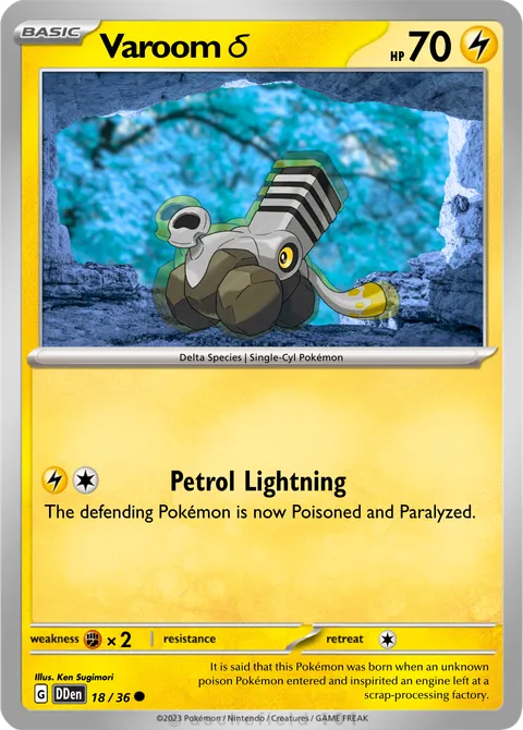 Delta Species | Single-Cyl Pokémonillus. Ken Sugimori#18/36It is said that this Pokémon was born when an unknown poison Pokémon entered and inspirited an engine left at a scrap-processing factory.Created by @PokeSooper on 12 April 2025