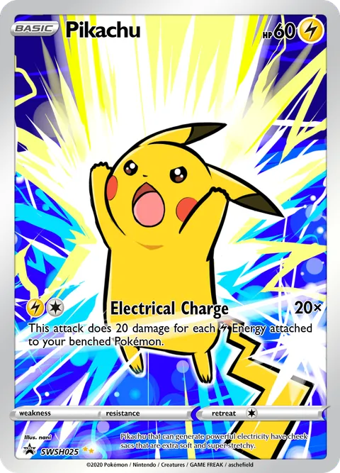 illus. nani#SWSH025Pikachu that can generate powerful electricity have cheek sacs that are extra soft and super stretchy.Created by @Pokefan006 on 23 November 2023