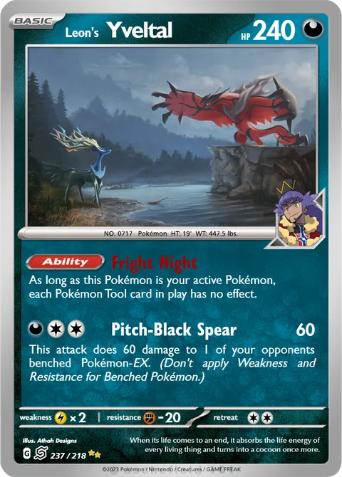 NO. 0717 Pokémon HT: 19' WT: 447.5 lbs.illus. Athah Designs#237/218When its life comes to an end, it absorbs the life energy of every living thing and turns into a cocoon once more.Created by @PokemonMan12345 on 09 August 2025Includes assets by Creatures Inc.