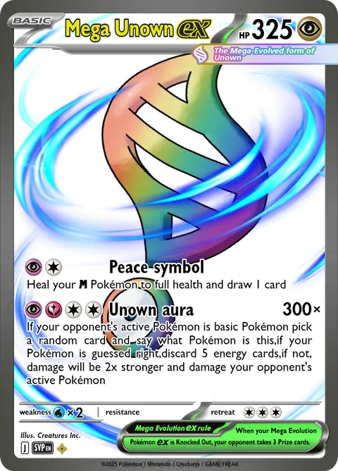 If your opponent's active Pokémon is basic Pokémon pick a random card and say what Pokémon is this,if your Pokémon is guessed right,discard 5 energy cards,if not, damage will be 2x stronger and damage your opponent's active Pokémon