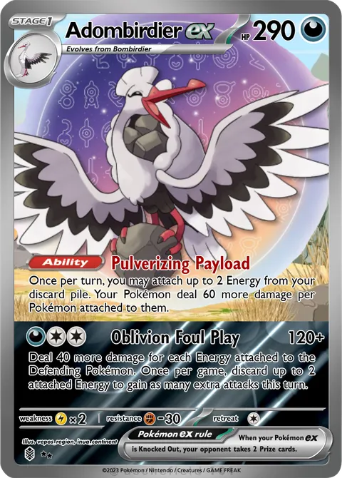 Once per turn, you may attach up to 2 Energy from your discard pile. Your Pokémon deal 60 more damage per Pokémon attached to them.Oblivion Foul Play • 120+