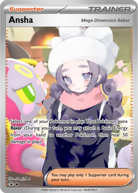 Select one of your Pokémon in play. That Pokémon gains Baker (During your turn, you may attach a Basic Energy from your hand to another Pokémon, then heal 50 damage in play).