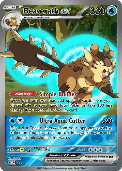 Once per turn, you may add up to 3 cards from your discard pile to your hand. Your Pokémon take 100 less damage if you control a Stadium card.Ultra Aqua Cutter • 220