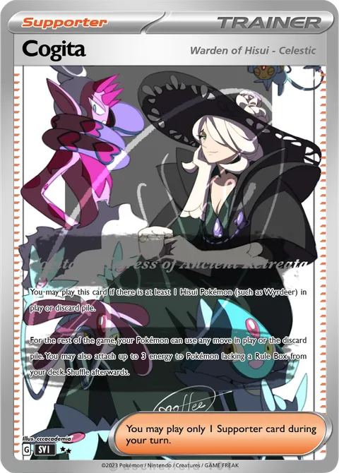 You may play this card if there is at least 1 Hisui Pokémon (such as Wyrdeer) in play or discard pile. For the rest of the game, your Pokémon can use any move in play or the discard pile. You may also attach up to 3 energy to Pokémon lacking a Rule Box from your deck. Shuffle afterwards.