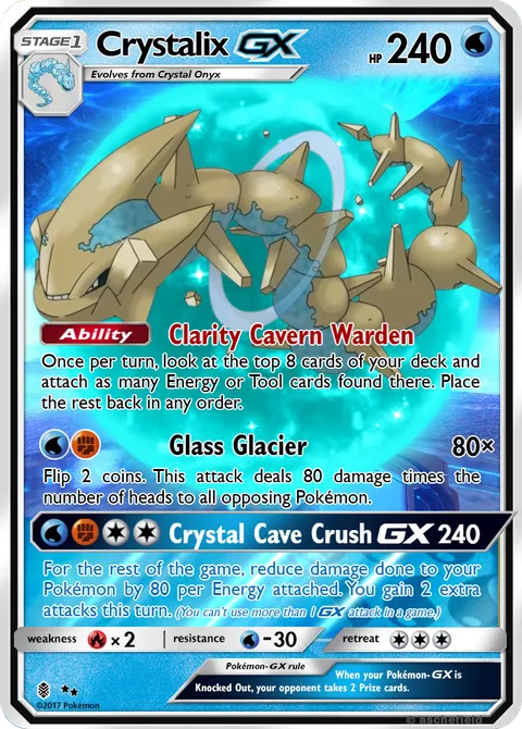 Once per turn, look at the top 8 cards of your deck and attach as many Energy or Tool cards found there. Place the rest back in any order.Glass Glacier • 80×
