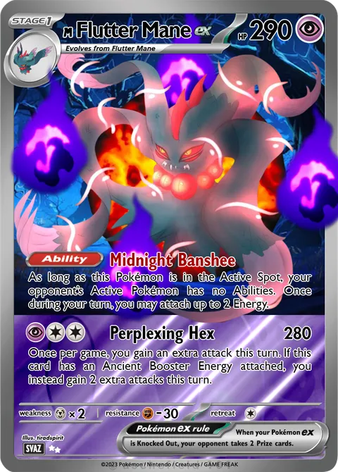As long as this Pokémon is in the Active Spot, your opponent’s Active Pokémon has no Abilities. Once during your turn, you may attach up to 2 Energy.Perplexing Hex • 280
