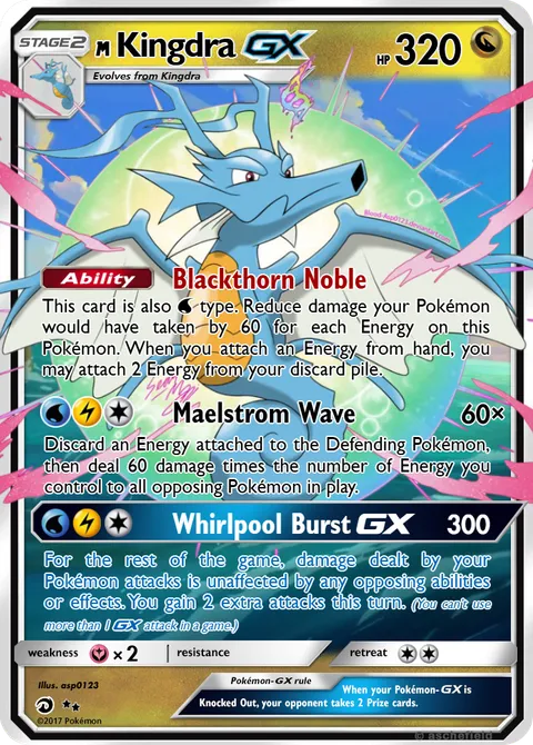 This card is also W type. Reduce damage your Pokémon would have taken by 60 for each Energy on this Pokémon. When you attach an Energy from hand, you may attach 2 Energy from your discard pile.Maelstrom Wave • 60×