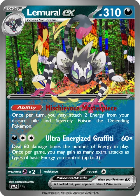 Once per turn, you may attach 2 Energy from your discard pile and Severely Poison the Defending Pokémon.Ultra Energized Graffiti • 60×