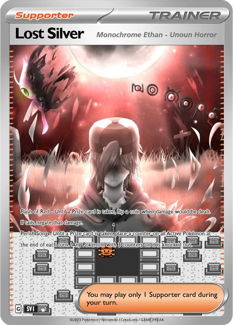 Flash of Red - Until a Prize card is taken, flip a coin when damage would be dealt. If tails, negate that damage. Perish Song - Until a Prize card is taken, place a counter on all Active Pokémon at the end of each turn. Any Pokémon with 3 counters on it is knocked out.