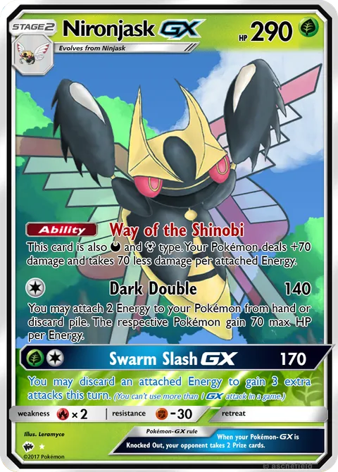 This card is also D and M type. Your Pokémon deals +70 damage and takes 70 less damage per attached Energy.Dark Double • 140