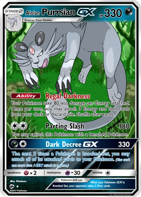 Your Pokémon take 80 less damage per Energy attached. Once per turn, you may attach 3 Energy and Tool cards from your deck or discard pile. Shuffle afterwards.Parting Slash • 180