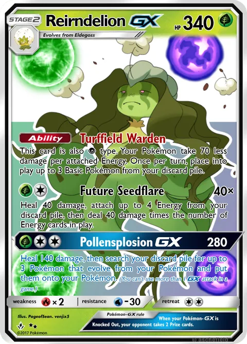 This card is also P type. Your Pokémon take 70 less damage per attached Energy. Once per turn, place into play up to 3 Basic Pokémon from your discard pile.Future Seedflare • 40×