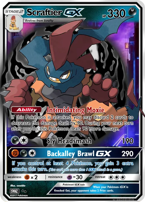 If this Pokémon is attacked, you may discard 2 cards to decrease the damage dealt by 90. During your next turn after you do, this Pokémon deals 90 more damage.Sly Headsmash • 190