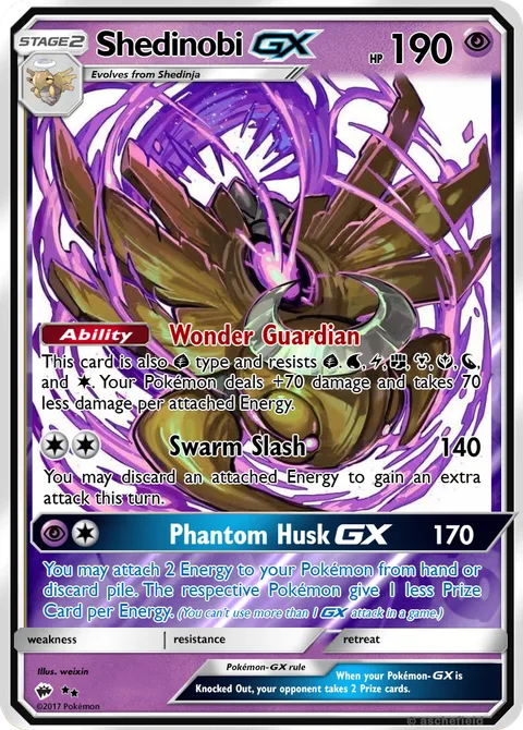 This card is also G type and resists G. W, L, F, M, Y, N, and C. Your Pokémon deals +70 damage and takes 70 less damage per attached Energy.Swarm Slash • 140