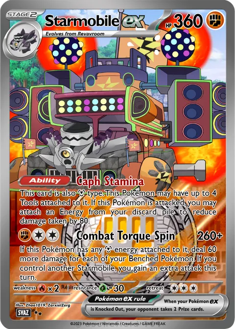 This card is also M type. This Pokémon may have up to 4 Tools attached to it. If this Pokémon is attacked, you may attach an Energy from your discard pile to reduce damage taken by 80.Combat Torque Spin • 260+