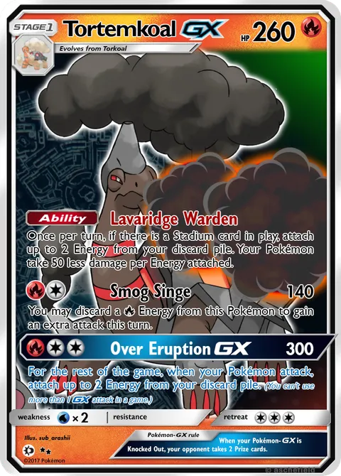 Once per turn, if there is a Stadium card in play, attach up to 2 Energy from your discard pile. Your Pokémon take 50 less damage per Energy attached.Smog Singe • 140