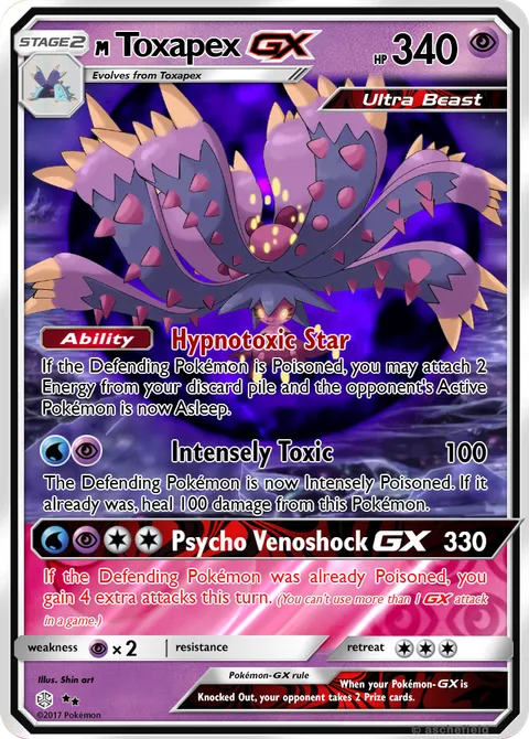If the Defending Pokémon is Poisoned, you may attach 2 Energy from your discard pile and the opponent's Active Pokémon is now Asleep.Intensely Toxic • 100