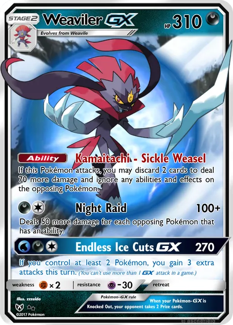 If this Pokémon attacks, you may discard 2 cards to deal 70 more damage and ignore any abilities and effects on the opposing Pokémon.Night Raid • 100+