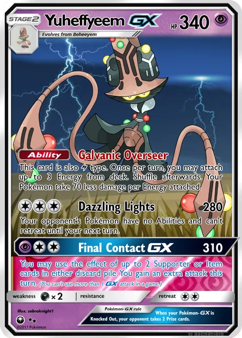This card is also L type. Once per turn, you may attach up to 3 Energy from deck. Shuffle afterwards. Your Pokémon take 70 less damage per Energy attached.Dazzling Lights • 280