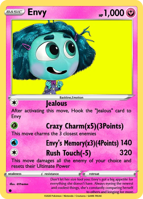 Backline,Emotionillus. @PrestonDon't let her size fool you: Envy's got a big appetite for everything she doesn't have. Always eyeing the newest and coolest things, she's constantly comparing herself to others and longing for more.Created by @PrestonTheSooza on 10 March 2026, last edited on 10 March 2026