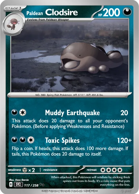 NO. 980 Spiny Fish Pokémon HT: 5'11" WT: 491.6 lbs.illus. Xaco Garcia#117/258When attacked, this Pokémon will retaliate by sticking thick spines out from its body. It’s a risky move that puts everything on the line.Created by @ProfessionalCardGenerator on 03 February 2024