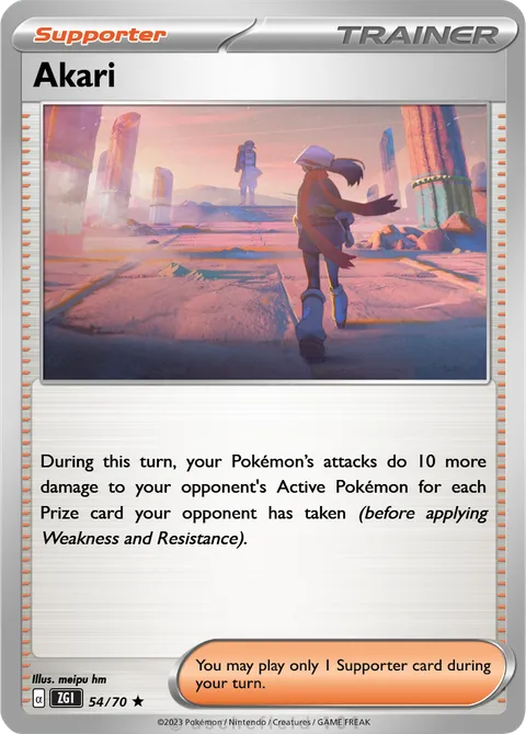 During this turn, your Pokémon’s attacks do 10 more damage to your opponent's Active Pokémon for each Prize card your opponent has taken (before applying Weakness and Resistance).