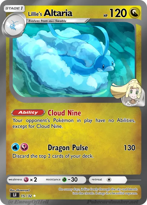 On sunny days, it flies freely through the sky and blends into the clouds. It sings in a beautiful soprano.