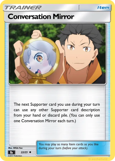 The next Supporter card you use during your turn can use any other Supporter card description from your hand or discard pile. (You can only use one Conversation Mirror each turn.)