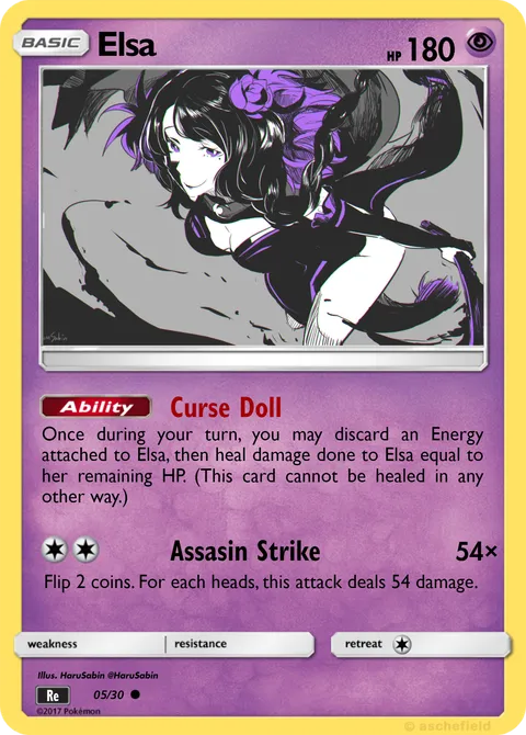 Once during your turn, you may discard an Energy attached to Elsa, then heal damage done to Elsa equal to her remaining HP. (This card cannot be healed in any other way.)Assasin Strike • 54×