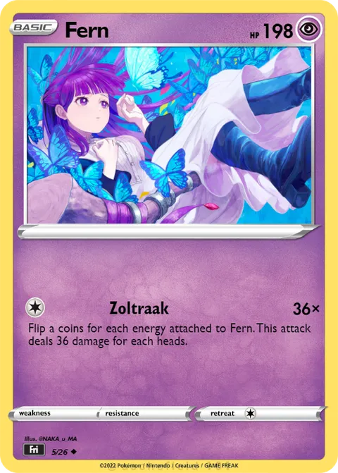 Flip a coins for each energy attached to Fern. This attack deals 36 damage for each heads.
