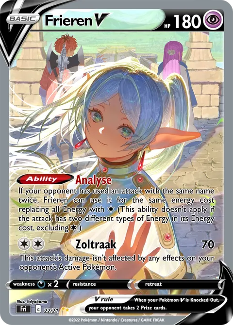 If your opponent has used an attack with the same name twice, Frieren can use it for the same energy cost replacing all Energy with C (This ability doesn't apply if the attack has two different types of Energy in its Energy cost, excluding C.)Zoltraak • 70