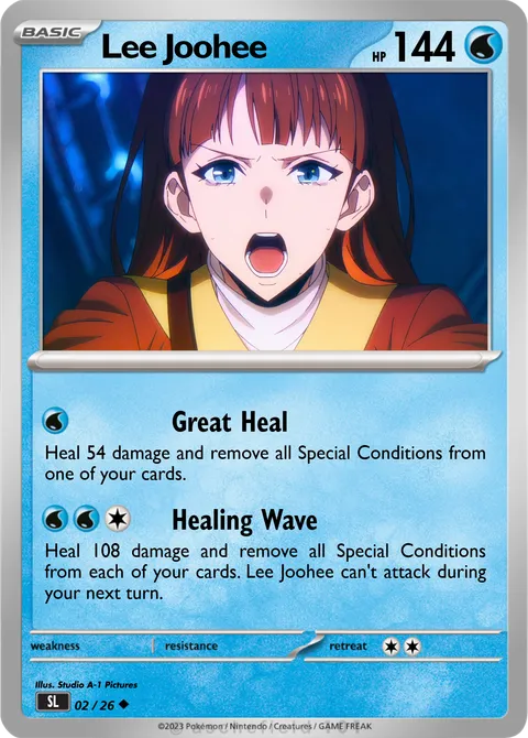 Heal 108 damage and remove all Special Conditions from each of your cards. Lee Joohee can't attack during your next turn.