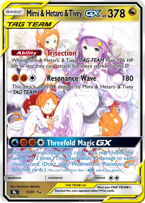 When Mimi & Hetaro & Tivey TAG TEAM have 126 HP left or less they can't attack, but there retreat cost is 0.Resonance Wave • 180